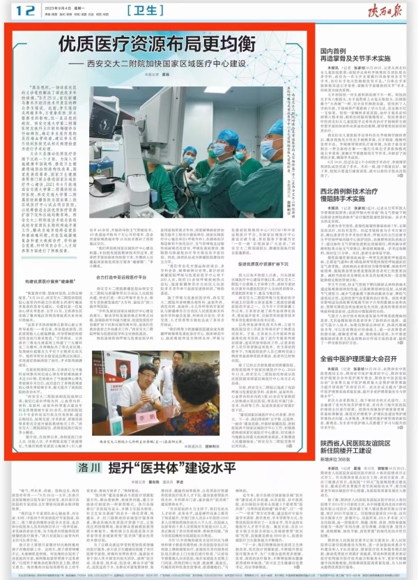 “建设国家区域医疗中心任务重、责任大。下一步,我们将按照‘五平移、五延伸、一融合’建设思路,开展好新疆医院、洛阳医院两个国家区域医疗中心工作,积极推进杨凌国家区域医疗中心建设,切实减少当地群众因重大疾病跨省就医,不断增进人民健康福祉。”西安交大二附院党委书记刘昌说。