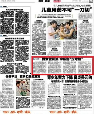 2012年6月8日,西安晚报消费与健康版面刊登关于我院消化内科胃食管反流病患者健康教育公益讲座的活动通知