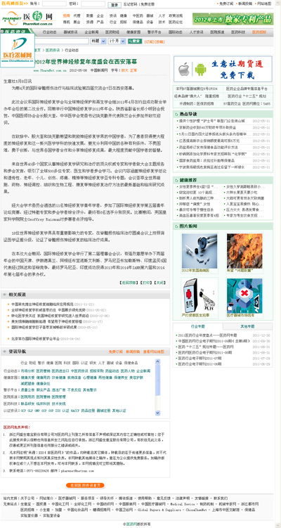2012年5月8日,医药网医药资讯频道刊登我院承办国际神经修复学会第五届年会的相关报道,题为:《2012年国际神经修复年度盛会在西安落幕》