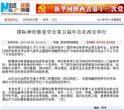 新华网陕西频道5月5日电(记者许祖华)国际神经修复学会第五届年会、全球神经保护和再生学会第九届年会暨国际脊髓损伤治疗与临床试验第四届交流会5月4日至7日在西安举行。
