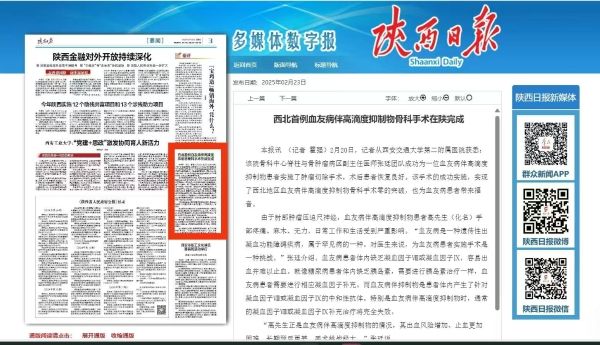 2月20日,记者从西安交通大学第二附属医院获悉:该院骨科中心脊柱与骨肿瘤病区副主任医师张廷团队成功为一位血友病伴高滴度抑制物患者实施了肿瘤切除手术,术后患者恢复良好。该手术的成功实施,实现了西北地区血友病伴高滴度抑制物骨科手术零的突破,也为血友病患者带来福音。