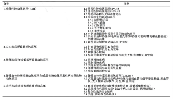 肺动脉高压的分类