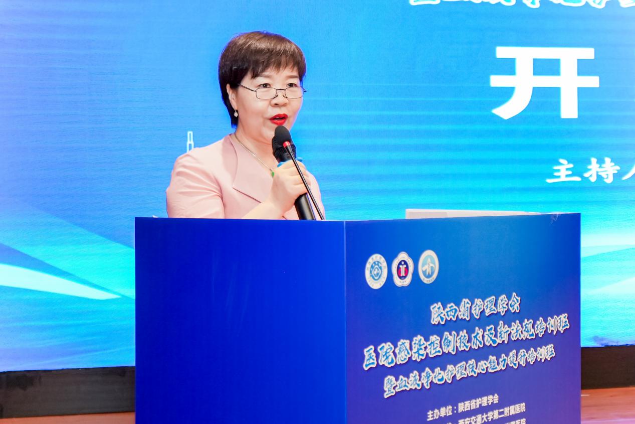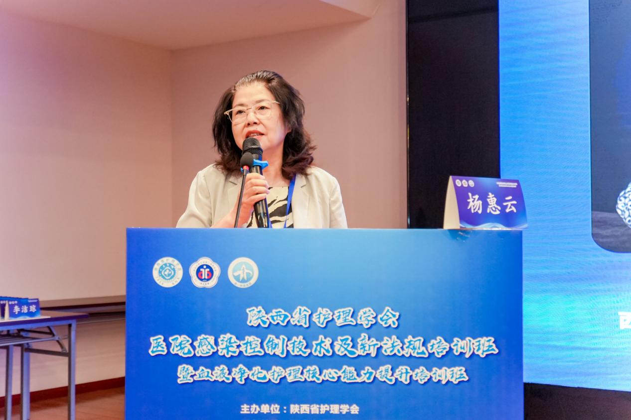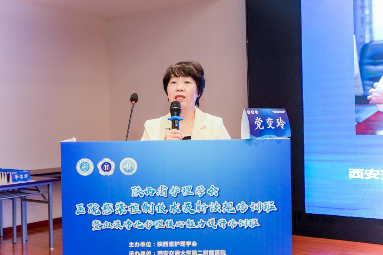 杨惠云理事长代表陕西省护理学会对参会嘉宾和学员表示热烈的欢迎!对培训班的举办表示衷心的祝贺!对前期筹备会议的会务组表达了诚挚的感谢!并强调各专科护理联合在医疗服务中的重要性。她希望通过本次学习,不仅能够掌握最新的感染控制新法规,更能够搭建起护理各专业之间交流合作的桥梁,共同推动护理事业的发展。