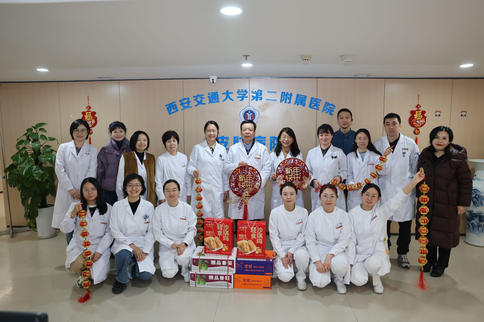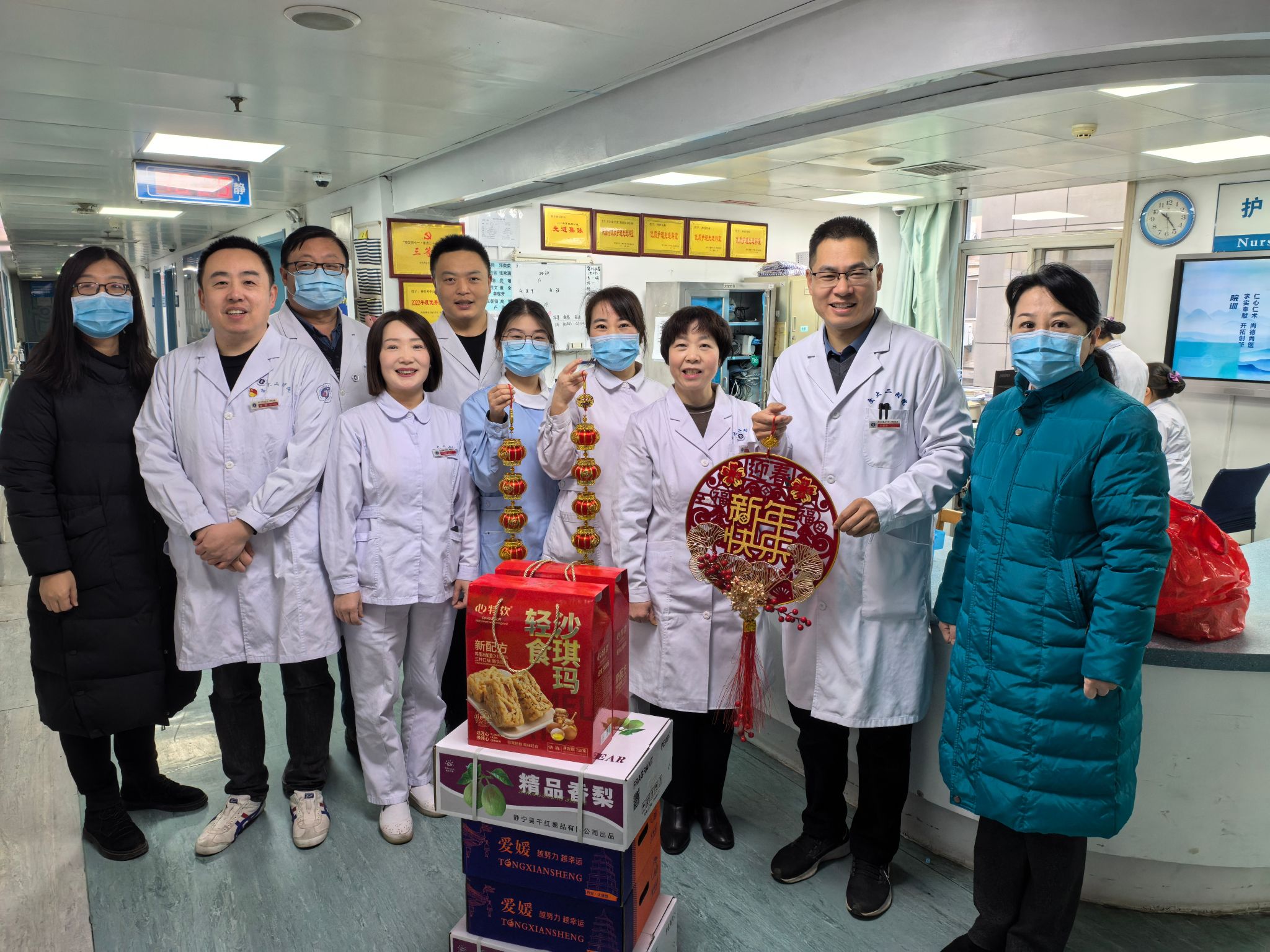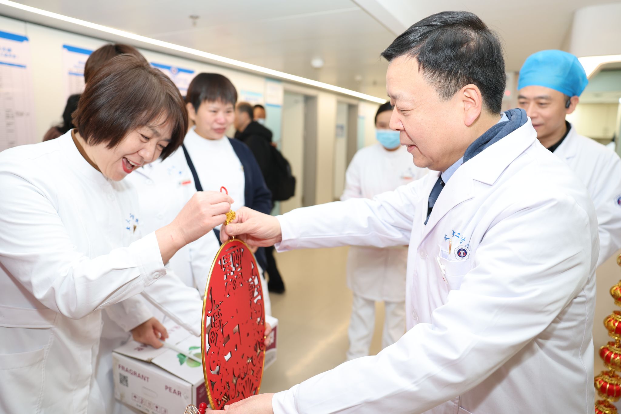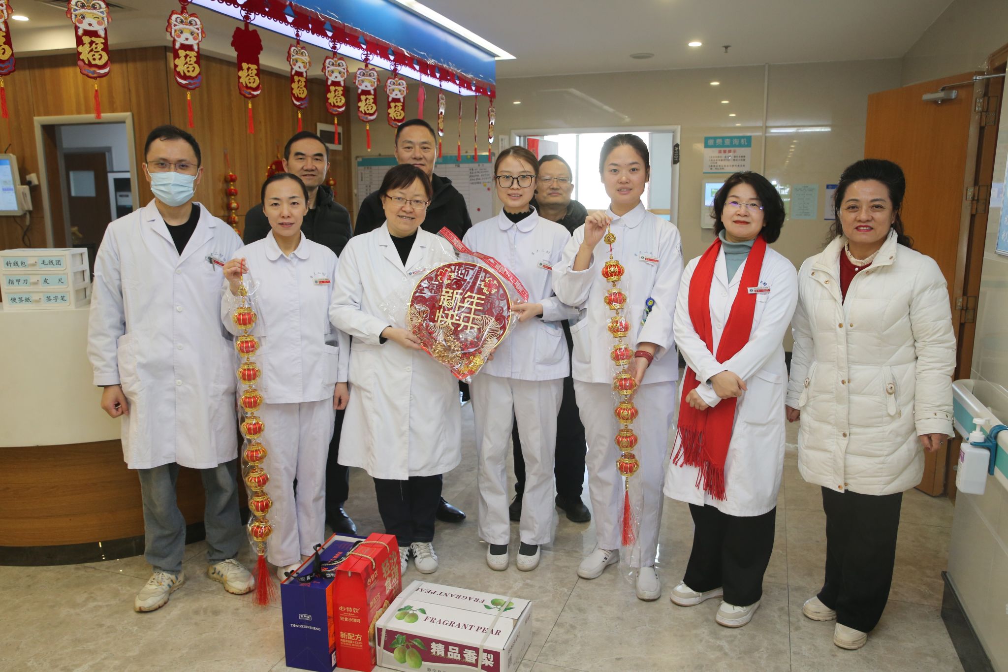 辞旧迎新,灵蛇接福。临近除夕,1月27日上午,党委书记刘昌,院长张蓬勃,党委副书记滕文葆、党变玲,总会计师李文博,副院长戴一、刘明、郭卉、种铁,带领全体党政管理部门负责人,携带精心准备的慰问品,分组前往医院主院区及大明宫院区临床、医技、后勤保卫等一线岗位。他们为春节期间依然坚守岗位、用心守护百姓健康的广大员工送上了新春的祝福,并对大家过去一年为医院发展建设和守护公众健康所作出的巨大贡献表达了诚挚的感谢。