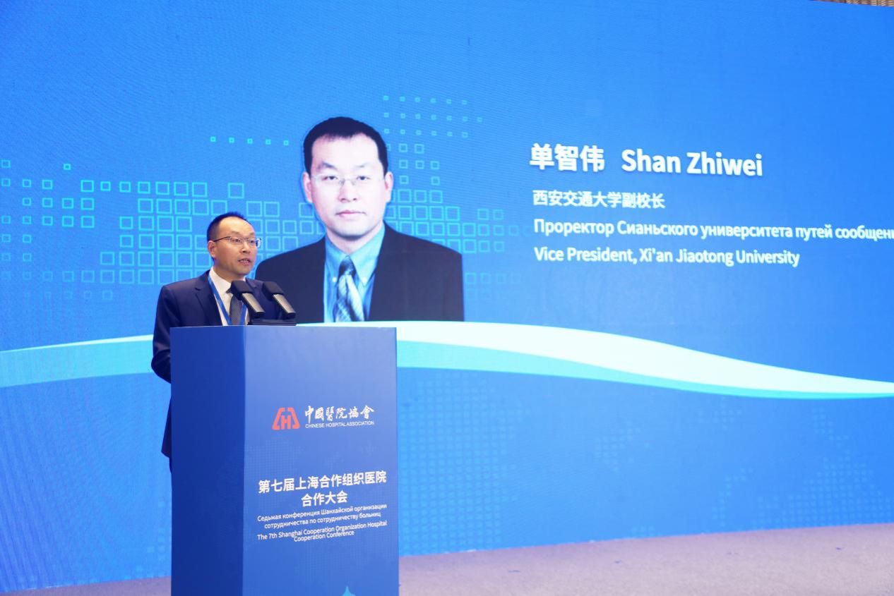 单智伟副校长代表学校出席大会并致辞。西安交通大学始终以服务国家战略和人类福祉为己任,并承担着上海合作组织大学中方校长办公室的重要职责。西安交通大学第二附属医院立足西部、面向国际,形成了“医工交叉、国际视野”的鲜明特色。未来,学校和医院将与上合组织成员国在科学研究、人才培养、远程医疗等领域开展务实合作,为区域及全球卫生健康事业发展注入新动力。