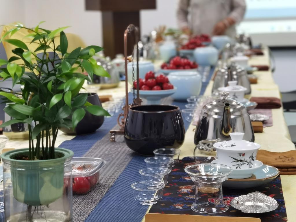 茶艺会上,鲜花盛开,茶香四溢。各式各样的鲜花布满会场,它们或娇艳或清新,为茶艺会增添了一抹自然的色彩。而摆放在桌上的蛋糕更是精致可口,每一口都充满了甜蜜与幸福。