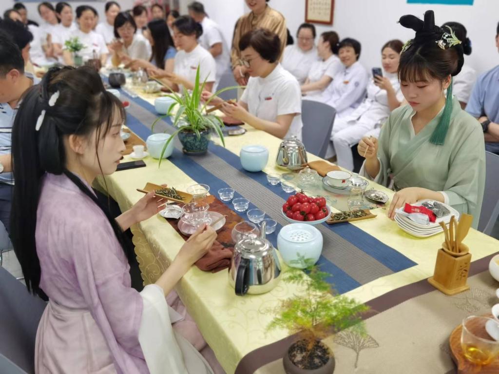 在品茶的过程中,有的护理姐妹换上了传统的汉服。汉服飘逸的裙摆、精致的刺绣,与茶艺的典雅相得益彰。大家围坐在一起,轻轻端起茶杯,细细品味着茶水的甘醇。茶叶在杯中舒展,心情在茶香中获得宁静。这次茶艺会,让大家在茶香中找到了调节心情、释放压力的良方。大家分享着对茶的理解,分享着对生活的感悟,分享着工作中的经验和心得。在交流中,护理团队增进了彼此的了解,也收获了更多的友谊和信任。