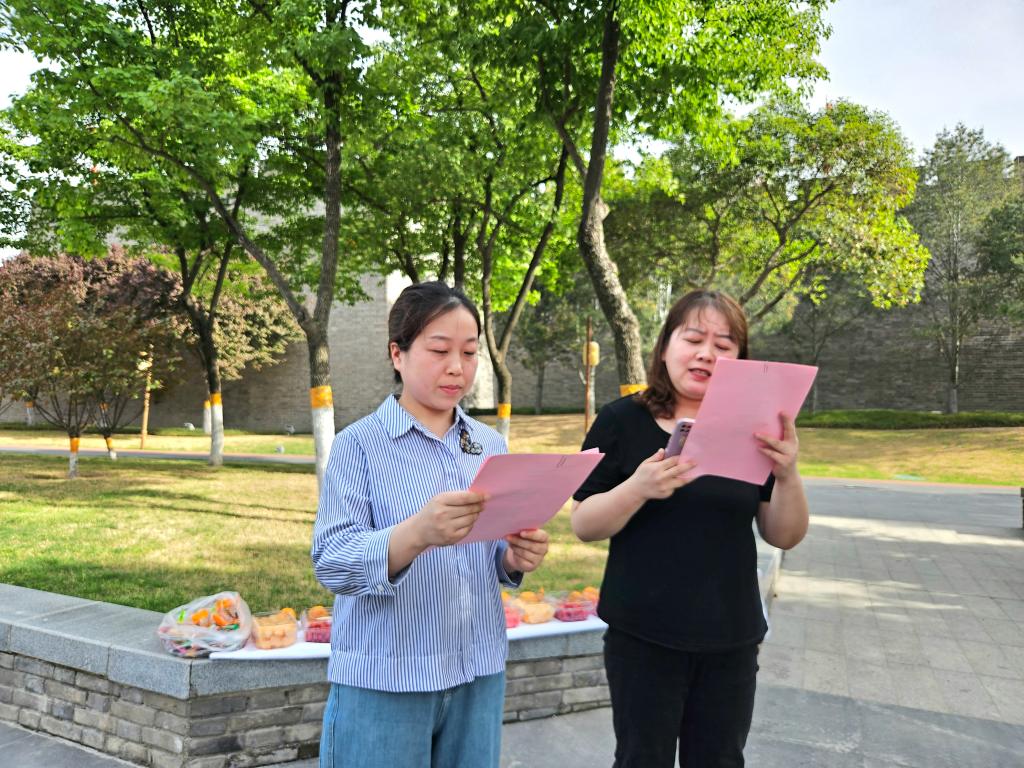 细长的柳丝,挽着春的芳踪,吐露着绵密的情谊,4月18日下午,妇产科护理部在完成了当月的护理查房和业务学习之后,大家结伴来到了北环城公园的城墙脚下,进行了一场以“触摸历史、传承文明、品诵经典、润泽书香”为主题的别开生面的诗朗诵活动。