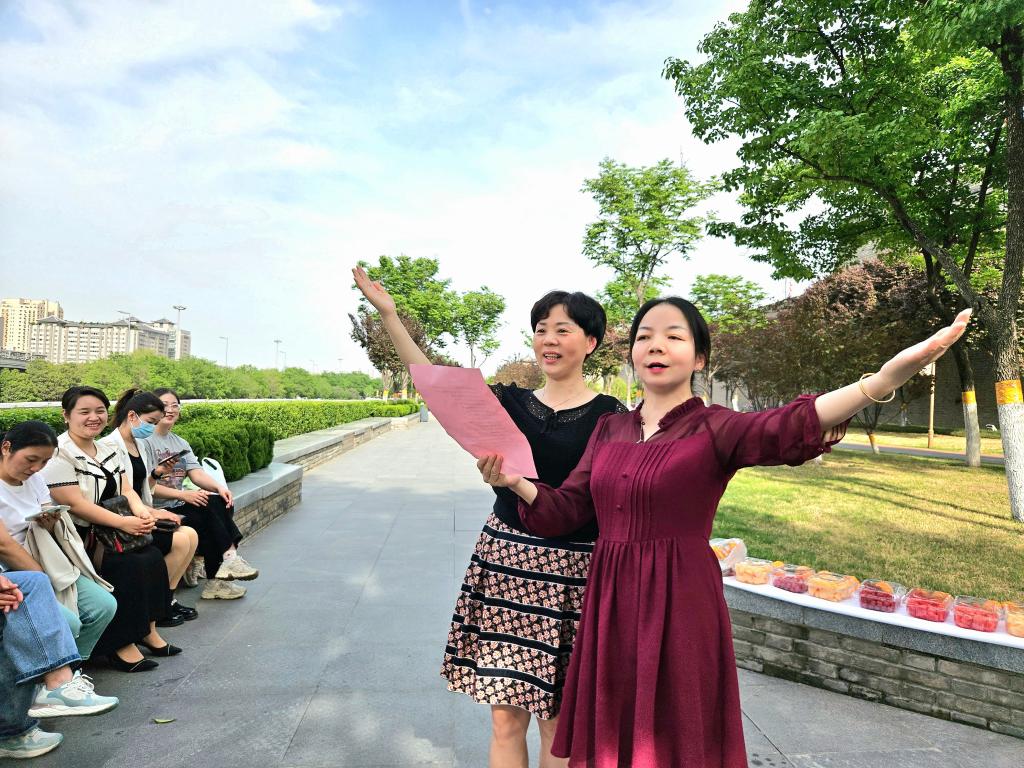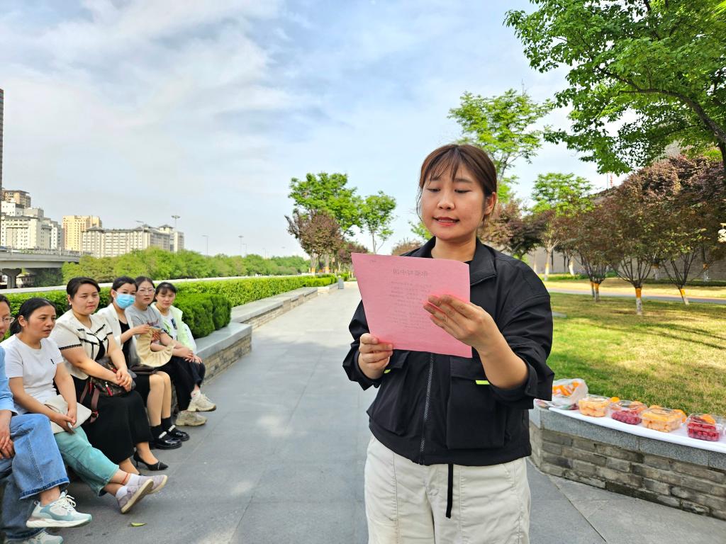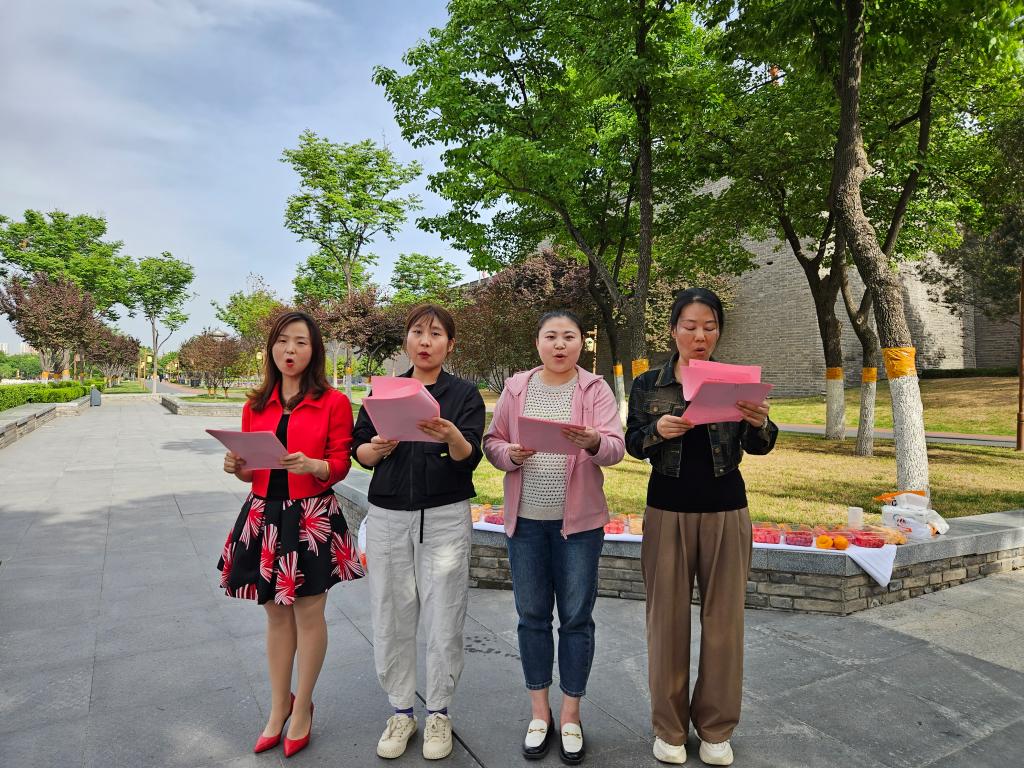 在赵护士长和其他几位护士长的带领下,大家来到了历史悠久的城墙下,围坐一团,由郑护士长隆重的介绍此次活动的主题--“触摸历史、传承文明、品诵经典、润泽书香”,由此拉开了朗诵活动的序幕。门诊的姐妹以”妇产科之歌”表达出对科室的热爱及职业的忠守;产房的姐妹们以汪国真诗词表达出对生活的热爱;二病区的姐妹们以“生命之光”颂扬出生命之美及对美好生活的追求;一病区的姐妹们的“赞天使之歌”,让大家更加深了对自身职业的理解及热爱;郑彩霞护士长和赵艳护士长合颂的“大写的中国”,更是以炽热的情感表达出对祖国深深的热爱和深情的赞美!