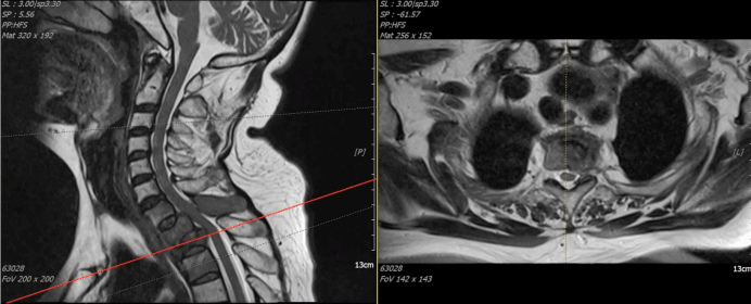 摆在团队面前的首要难题,是手术入路的抉择:后路or前路?后路手术操作常规、暴露简单,相对风险较低,却因无法直达脊髓前方减压,疗效存疑;前路手术虽能精准切除压迫病灶,却受限于胸椎 1、2椎体前方特殊解剖——纵膈、胸骨等结构阻挡,常规下颈椎切口难以暴露病椎。张纯主任迅速启动多学科会诊:请胸外科副主任刘士源教授与骨科团队共同攻坚,在国际国内相关文献稀缺、操作描述模糊的困境下,逐字研阅有限资料,结合自身临床经验与患者个体特征,精准制定个性化“经胸骨上端劈开前路椎体切除减压”方案,并于术前向家属详细沟通,告知手术方案,缓解其焦虑情绪。