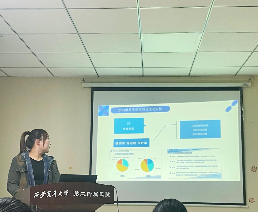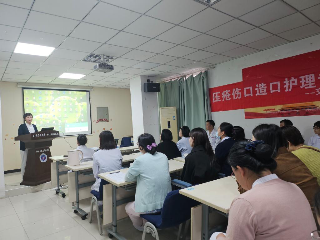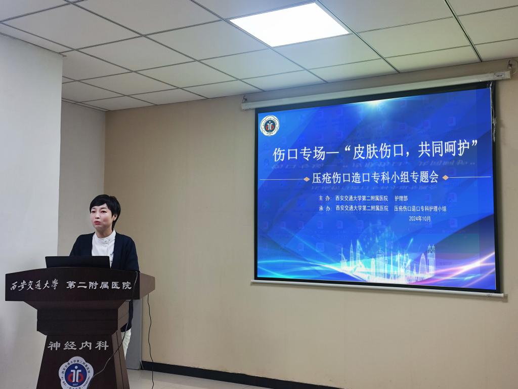为提高临床护理人员压疮和伤口的预防和管理水平,提高护理质量, 2024年10月29日15:00交大二附院压疮伤口造口专科护理小组在神经外科示教室召开以“皮肤伤口、共同呵护”为主题的专题会议,护理部姚聪副主任、压疮伤口造口专科护理小组组长王金娟,压疮小组核心成员,压疮联络员及护理骨干共50余人参加了此次会议,会议由陈江副护士长主持。