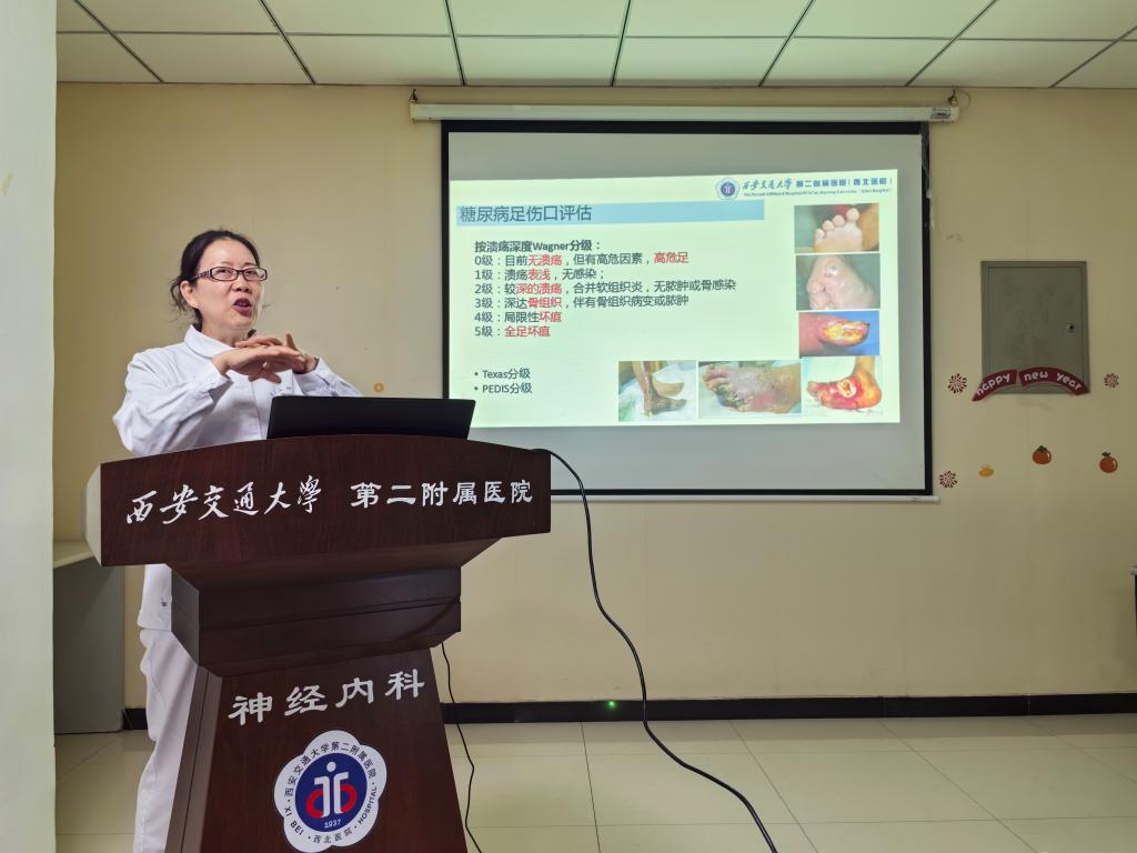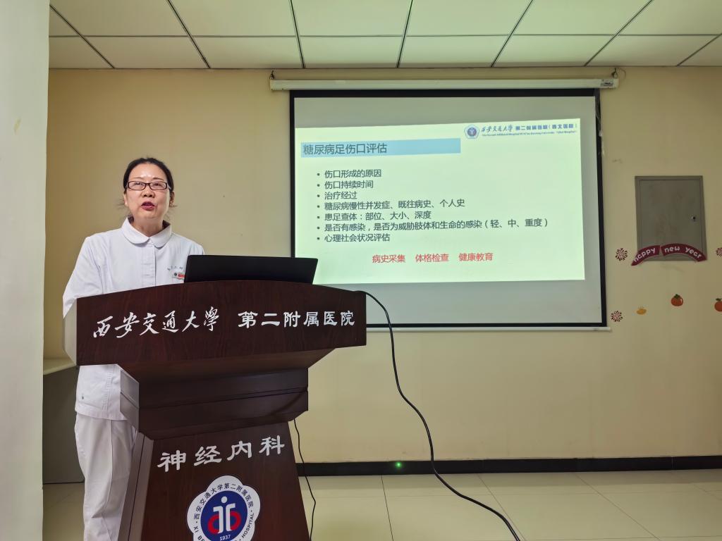 会议第二项、压疮伤口造口专科小组宋美利老师讲解了《糖尿病足创面管理策略》,宋老师为大家细致的讲解了糖尿病足的发病原因、伤口的评估方法以及六大处理原则,内容紧跟糖尿病足相关知识前沿,让大家对糖尿病的危害有了更深的了解,掌握了糖尿病足的预防和规范处理方法,受益匪浅。