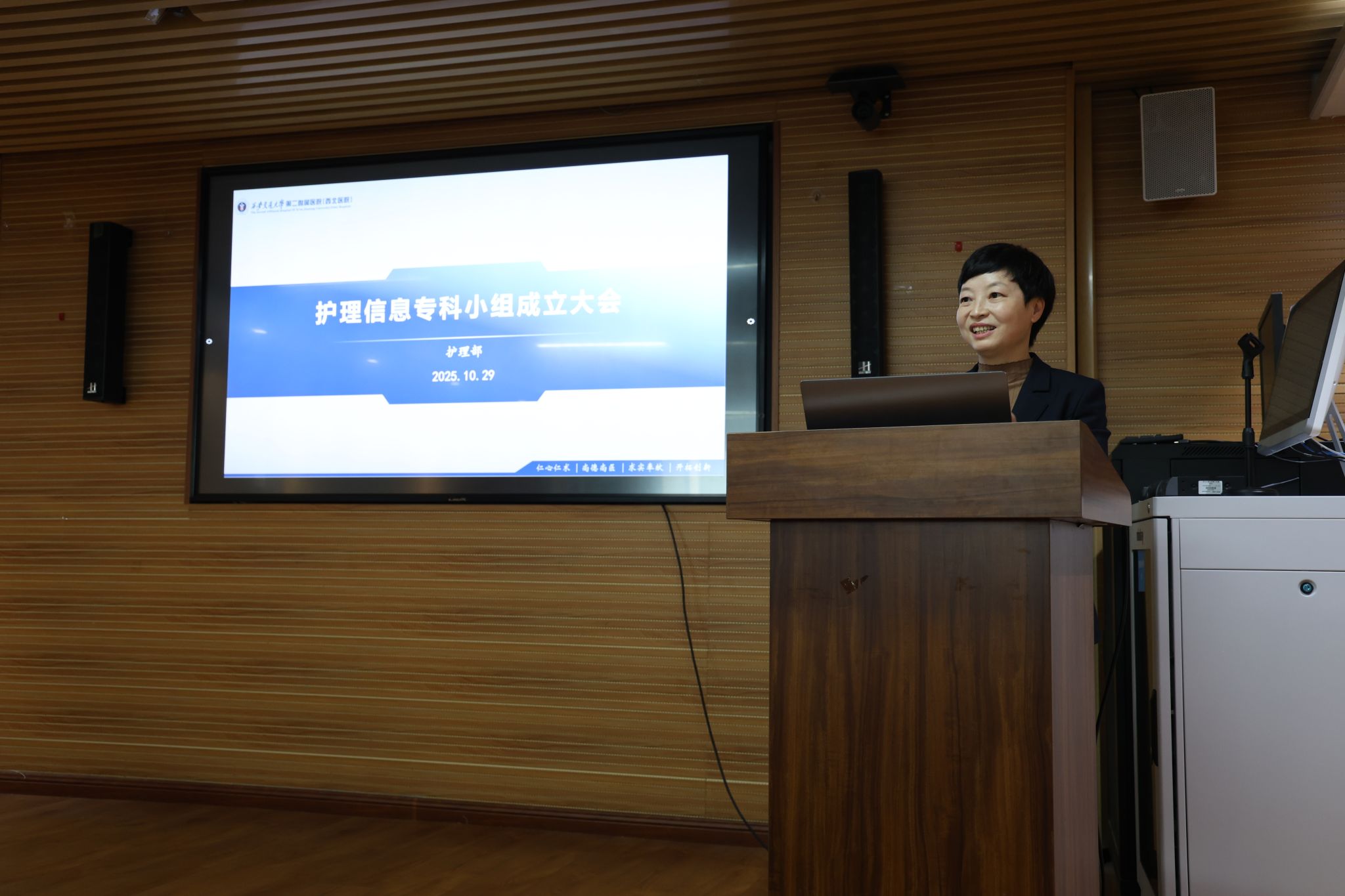 杨惠云主任为大会致开幕辞。她首先对小组的成立表示热烈祝贺,并指出,信息系统的持续优化,其根本动力和智慧源泉始终来自于临床一线的医护同仁。她希望小组的成立能够为未来申报信息相关科研项目、促进资源共享、开阔管理思路提供关键平台,并为护理专业的精细化、智能化发展提供坚实的技术支撑。