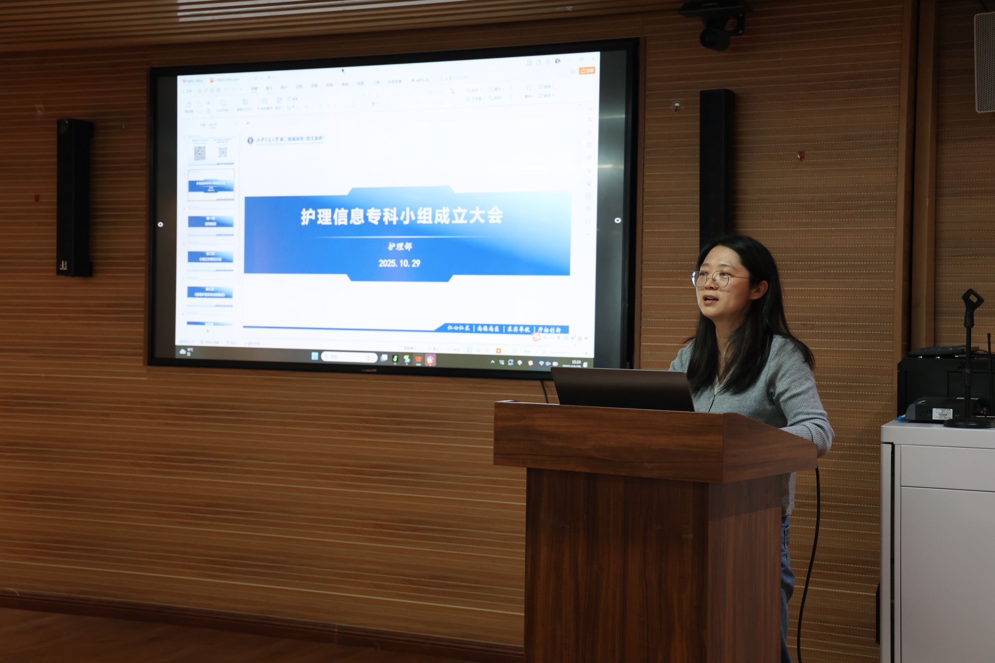 随后,护理信息小组组长杨滢就小组的工作制度、组织架构及年度工作规划进行了详细介绍,明确了以解决临床痛点为核心,通过建立高效的需求反馈与项目推进机制,切实提升护理工作效率与数据质量。