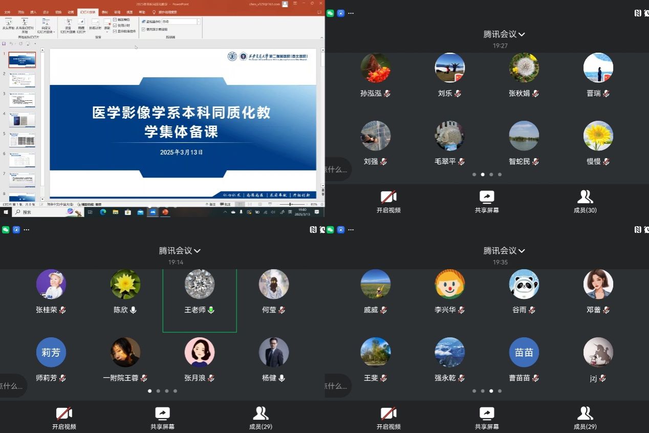 为保证本学期临床医学专业《医学影像课程》教学工作顺利开展,3月13日晚,一、二附院医学影像学科系主任及授课教师召开了两院同质化教学集体备课线上会议。