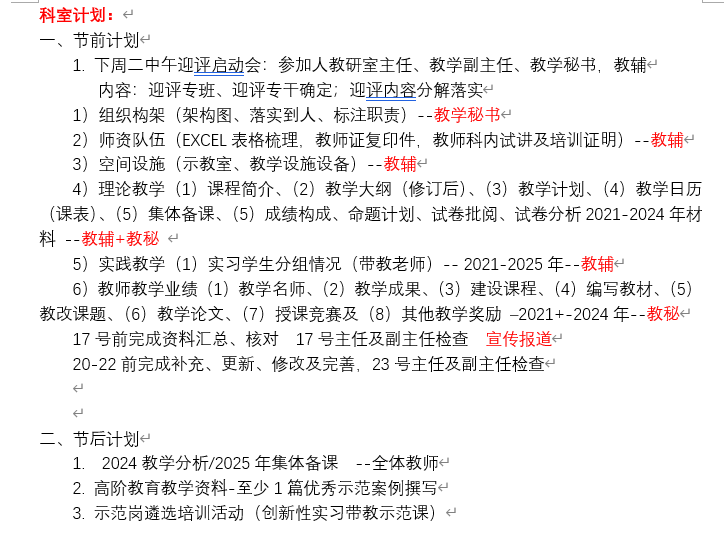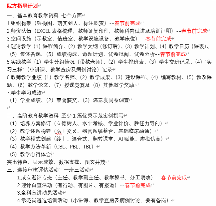 为进一步提升教学附属医院影像科学位点的教学质量与科研水平,确保医学影像学科的高质量发展,根据学校、院教务部相关文件及工作安排,医学影像学科系主任张月浪、教学主任陈欣高度重视,于近日召开了多场专题工作会。1月14日,科室召开了评估迎检启动会,会上确定了迎评专班、迎评专干,并对迎评内容分解落实,布置了工作计划及具体分工、职责,强调教学秘书、教辅及所有教师在做好本科室评估工作基础上,配合教学部完善相关资料收集整理。