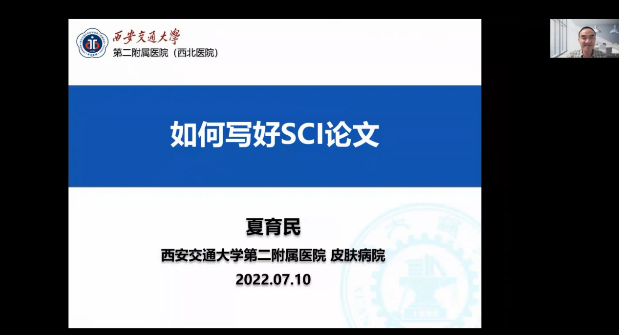 7月11日下午,教务部特邀夏育民教授予线上开展“如何写好SCI论文?”学术讲座。本次讲座是我院“名师启研 研究生科研核心能力提升课程”首场讲座,标志着我院院级研究生科研能力提升体系建设工作正式拉开帷幕。研究生、住培生、青年优秀教师共计400余人参加此次讲座。李小鹏副院长发表本次活动启动重要讲话,讲座由教务部刘颖副主任主持。