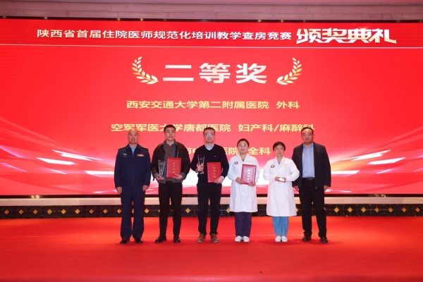 为进一步提升全省住院医师规范化培训带教师资的教学能力和培训质量,持续加强住培工作的内涵建设。1月9日,由陕西省卫生健康委员会指导、陕西省医师协会主办,空军军医大学西京医院承办的陕西省首届住院医师规范化培训教学查房竞赛决赛在建国饭店举行。经过激烈的角逐,我院妇产科专业基地尉春艳团队获一等奖,外科专业基地肿瘤外科刘棣团队获二等奖。