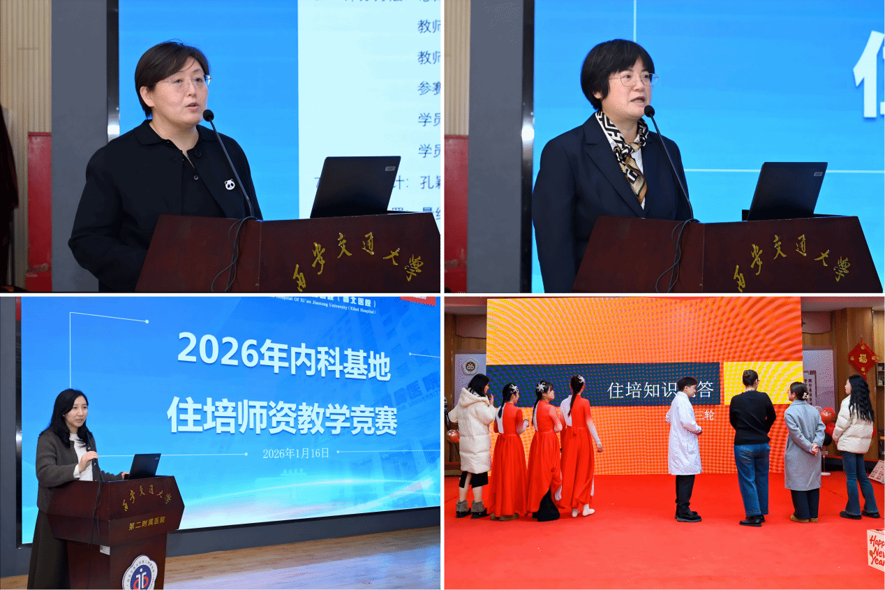 为传承深厚医学底蕴,拥抱数智教学新时代,全面提升住培师资核心教学能力,2026年1月16日,内科基地举办了“2026年内科基地住培师资能力提升系列活动”。活动由内科基地副主任焦杨和史红阳主持,并特邀龚均教授全程督导。系列活动分为教学竞赛与专业知识竞赛两大板块,分别于医院多功能厅与内科学系迎新会会场举行,吸引内科学系超过两百名医护人员及住培学员积极参与,现场气氛热烈。