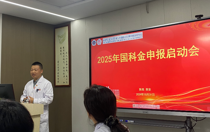 10月31日下午,乳腺疾病诊疗中心“科研能力提升专题会暨2025年国科金申报启动会”在乳腺疾病诊疗中心示教室召开。会议由乳腺疾病诊疗中心杜冲副主任主持,乳腺疾病诊疗中心张淑群主任、刘棣副主任、杨荔护士长及科室各级医师、护士骨干参加会议。科研部夏育民主任、肿瘤放疗科赵茜茜副主任参加会议并进行讲座交流。