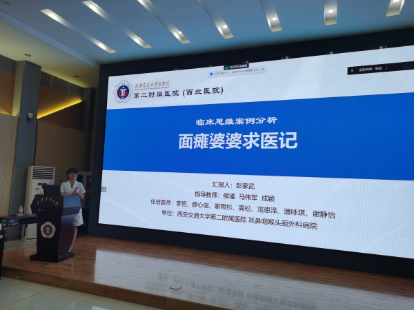 6月26日,由陕西省医师协会临床医师教育分会支持,西安交通大学第二附属医院教务部主办,耳鼻咽喉科学住培基地承办的“医案导学,思辨笃行”临床思维培养训练营-教学疑难病案讨论(第七期)在我院多功能厅举行,同步线上直播。活动由教务部项目挂职副主任张欣主持。