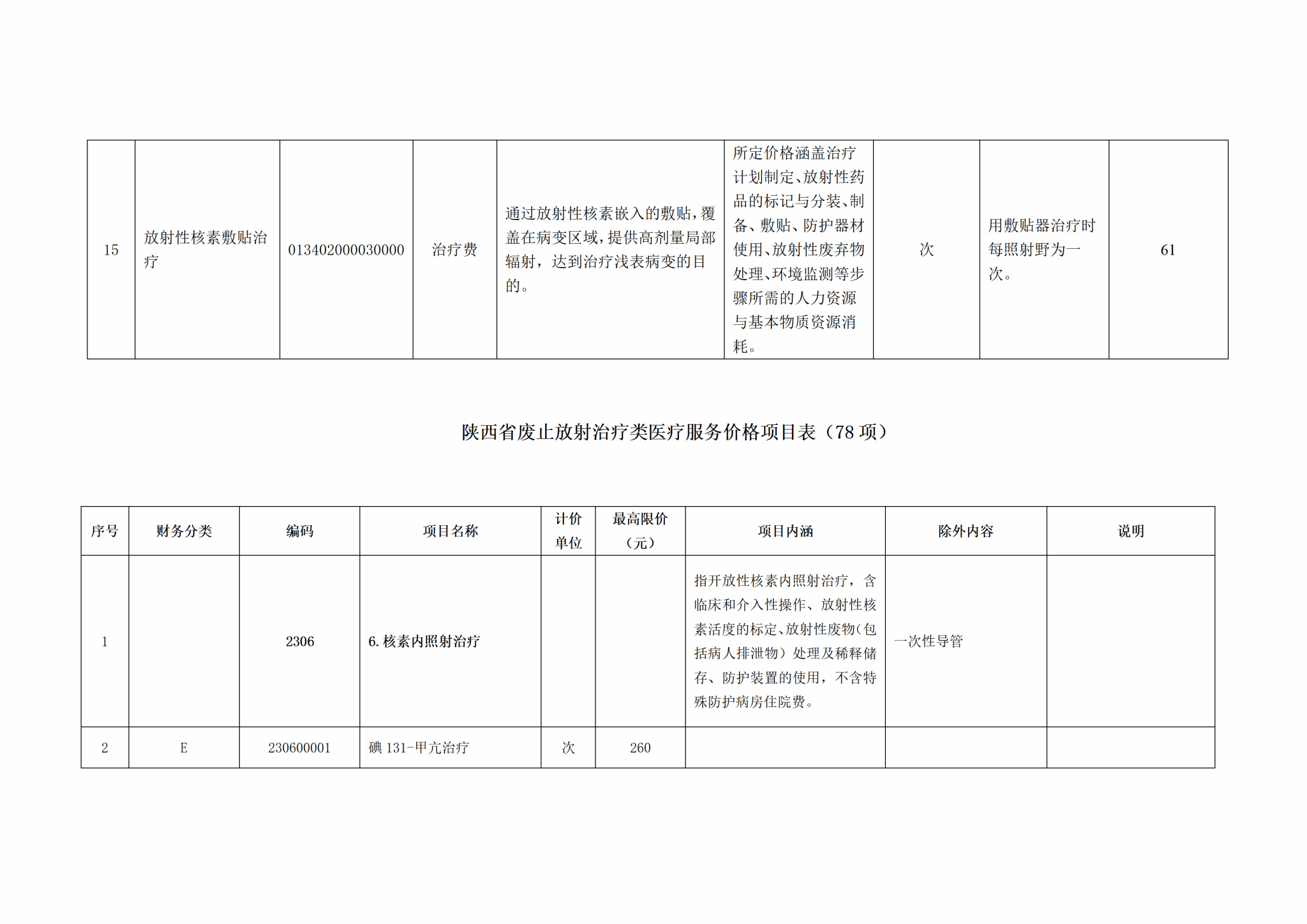 关于整合规范放射治疗类医疗服务价格项目的公示