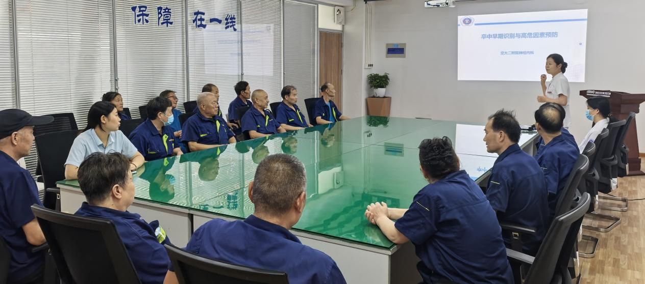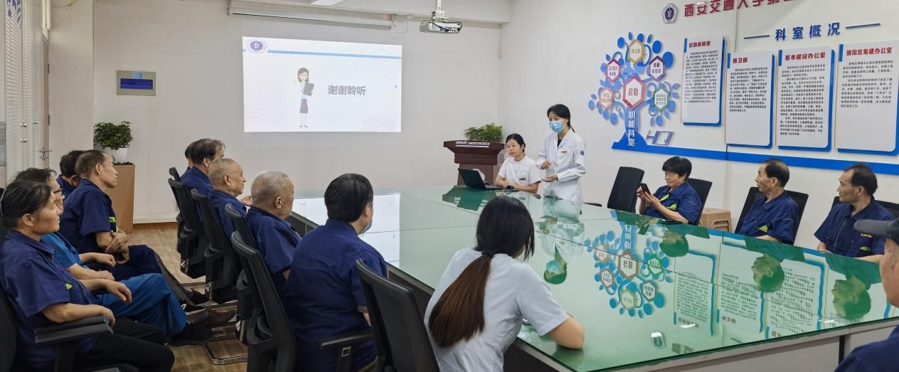 7月23日为提高我院第三方保洁公司职工健康意识,筑牢疾病防控防线,提高卒中早期识别,西安交通大学第二附属医院神经内科联合保洁公司开展脑卒中早期识别与防治宣讲活动,神经内科副护士长刘媛媛担任主讲。