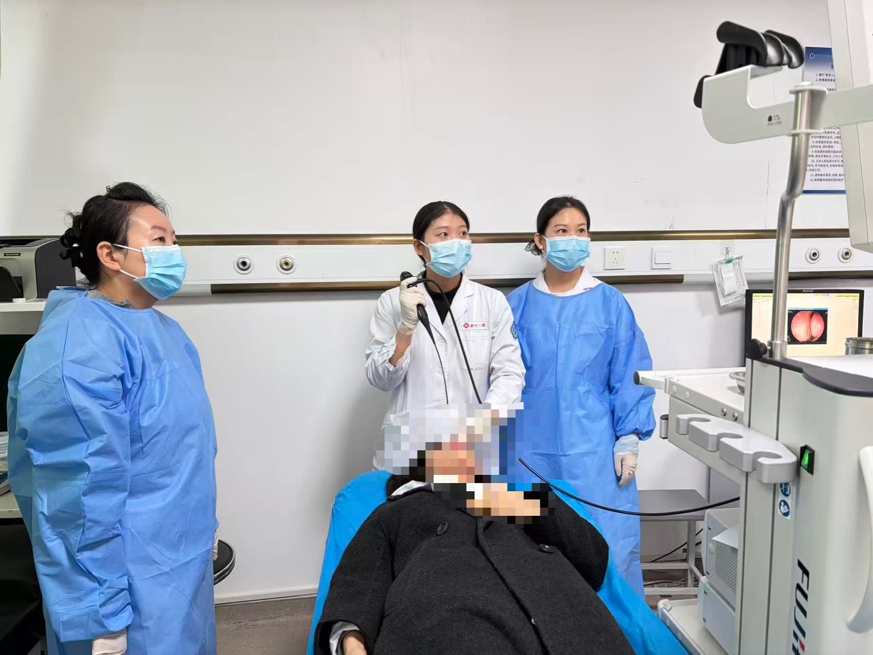 本次培训由孙斌副主任主持开幕式,任晓勇主任介绍规范化咽喉内镜室的建设,杜小滢老师带领学员参观耳鼻喉科各病区和功能检查室后,学员们就进入到紧张忙碌的实操课程培训中。