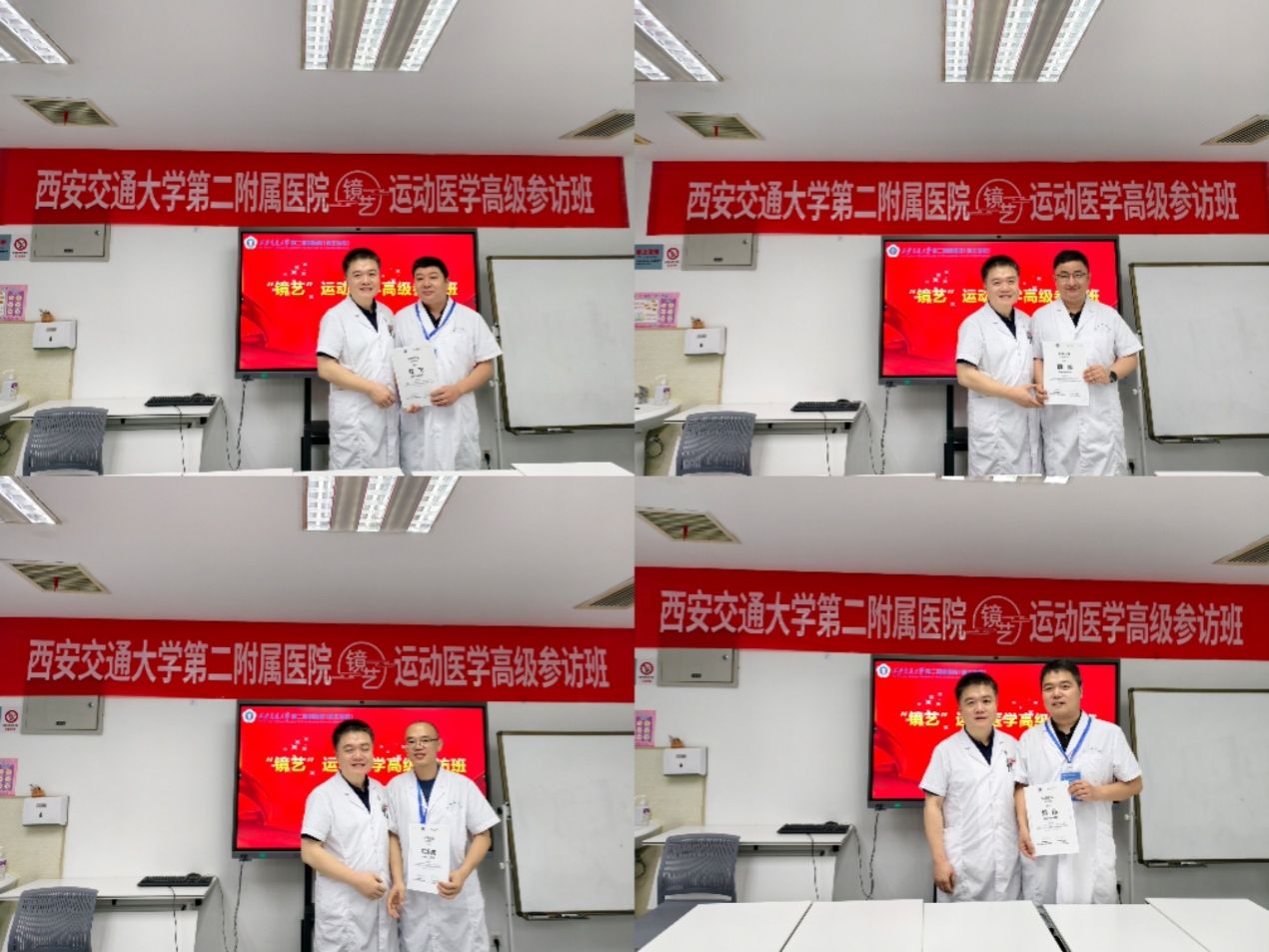 在全民健身国家战略的大背景下,运动损伤救治需求不断提高,为推动骨科运动医学技术的发展,提高骨科医师运动损伤疾病的诊疗水平,5月28-30日,在医务部、手术室、麻醉科的支持下,西安交通大学第二附属医院运动医学科成功举办了为期3天的第二期“镜艺”运动医学高级参访班,共有来自沈阳医学院附属中心医院、解放军联勤保障部队941医院、甘肃省合水县人民医院、咸阳市中心医院和汉中市人民医院的5名高年资学员受训,受到学员们的一致好评。