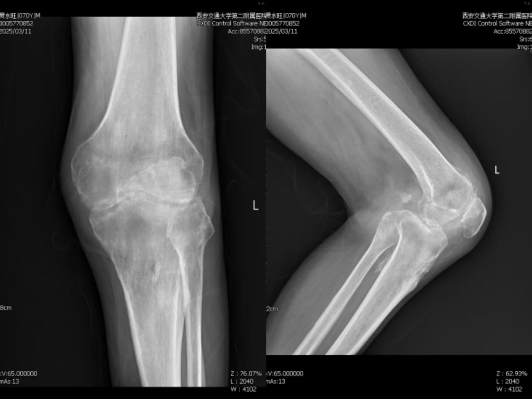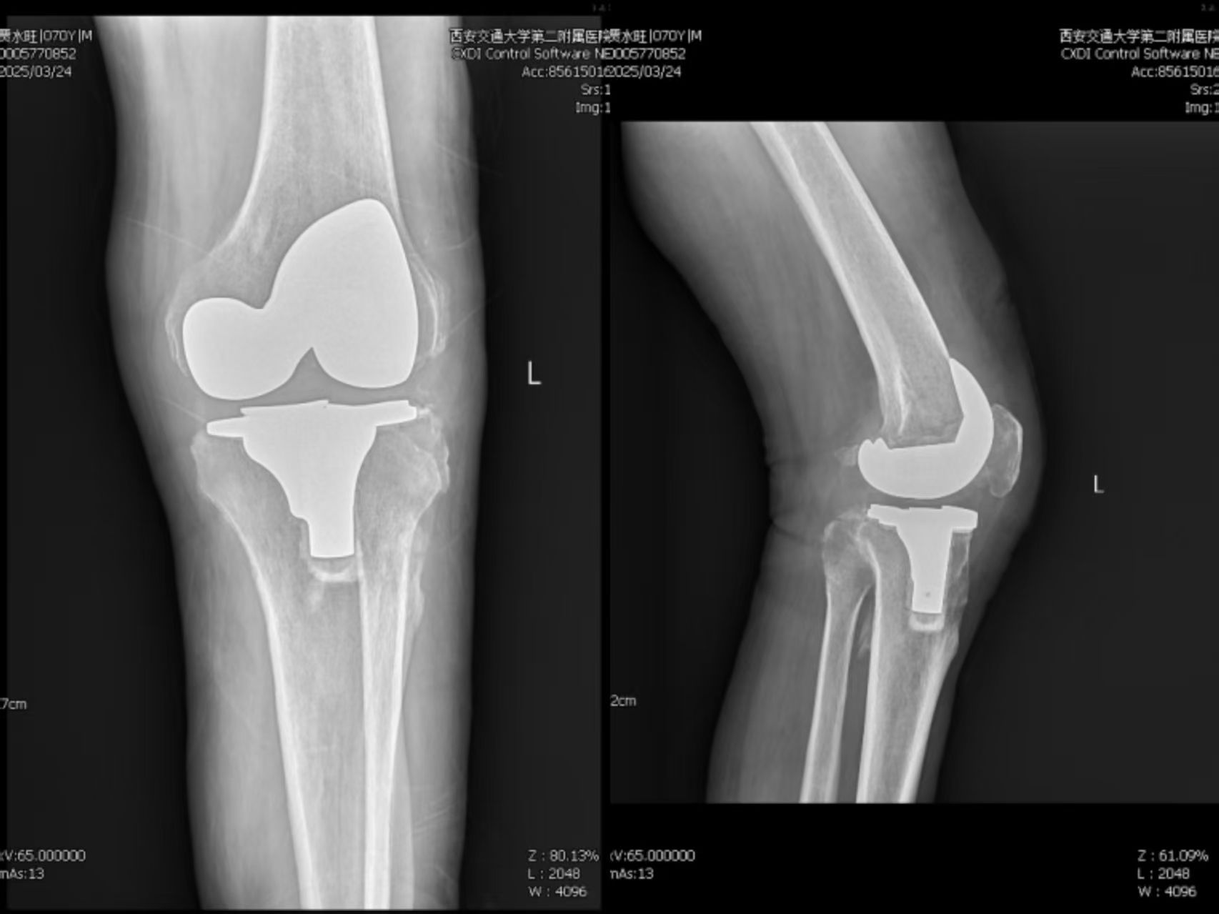 术后患者左膝关节X线正侧位片