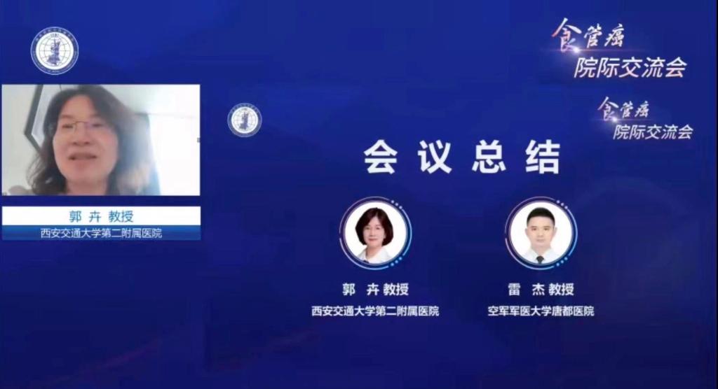 大会结束之际,我院副院长郭卉教授及空军军医大学第二附属医院副院长雷杰教授作了大会总结及未来展望。他们表示,希望能够借助本次论坛搭建的平台,增长专业理论知识、拓宽科研视野、为食管癌医疗事业的发展带来宝贵经验、先进理念、先进技术。未来希望大家可以延续院级交流,协同协作开展前沿的基础、临床以及转化研究。“以人民健康至上,以人民生命至上”的理念,造福百姓!