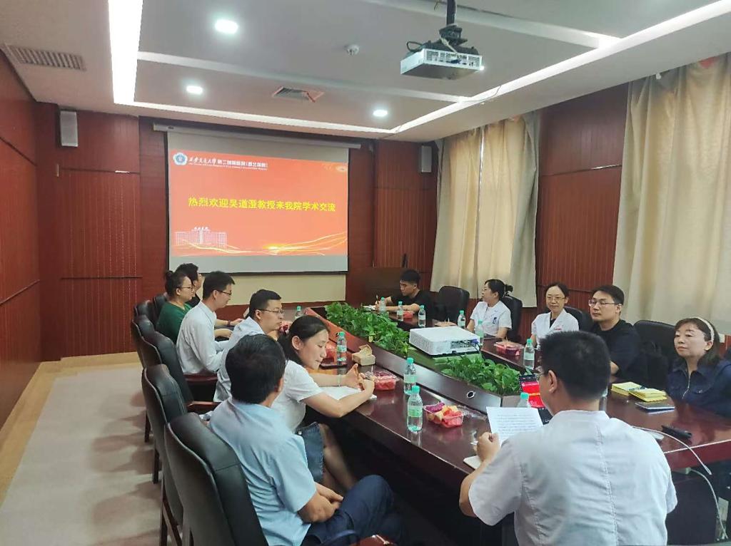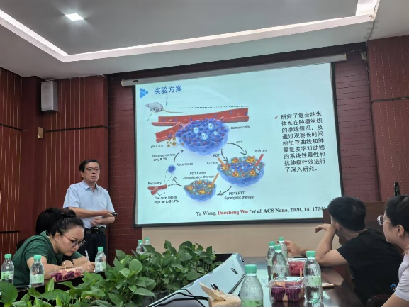 为进一步推动学科高质量发展,8月7日下午,西安交通大学第二附属医院老年普通外科特别邀请西安交通大学生命科学与技术学院生物医学工程系主任、国家自然科学基金评审专家吴道澄教授开展题为“肿瘤协同治疗纳米复合载体系统”的专题讲座,团队博士张帅一同参加交流活动。同时邀请肿瘤内科副主任尹晓然教授、影像科副主任张秋娟教授、核医学科狄佳主治医师、科研中心实验室的张婷助理研究员等进行学术交流,科室临床医生及研究生踊跃参加。