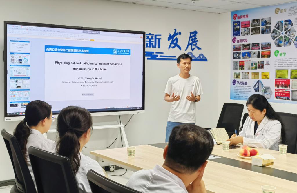 会上,展淑琴主任首先向到场的每一位嘉宾和同仁表达了衷心的感谢与热烈的欢迎,并隆重介绍了特邀嘉宾——王昌河教授。王教授,作为西安交通大学生命科学与技术学院神经科学研究中心的主任及生物系主任,不仅在学术界享有崇高的地位,更是陕西省科技创新团队的领军人物,荣获了多项重要的科研奖项。
