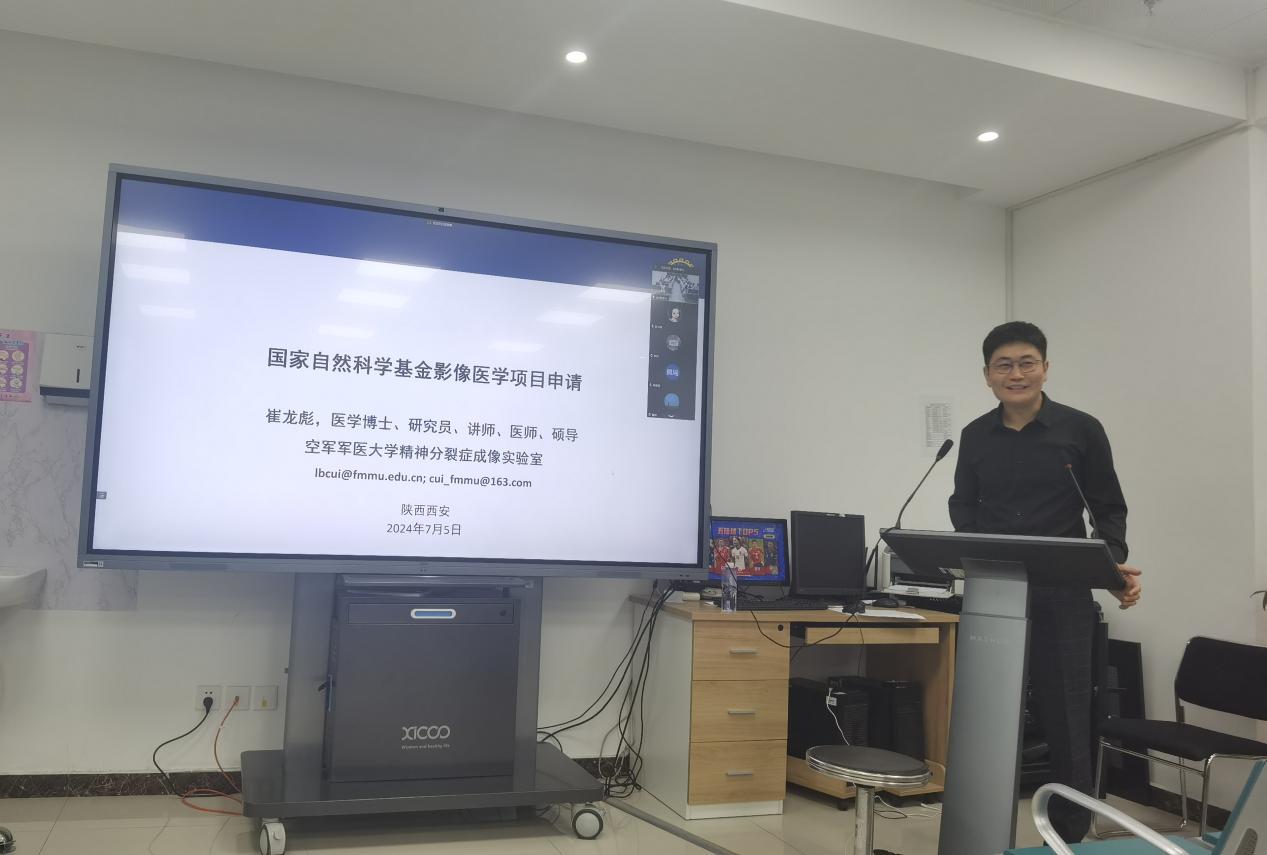 为积极推动2025年国家自然科学基金申报工作,医学影像科于2024年7月5日早上8:00在门诊综合楼负一层影像科示教室主办了国科金系列讲座,特邀请到空军九八六医院心理科研究员、国家自然科学基金面上项目与青年项目获得者崔龙彪博士进行“国家自然科学基金影像医学项目申请”的专题讲座,会议由医学影像科主任张月浪教授主持,医学影像科全体人员及医院其他科技人员线上、线下参加了学术会议。