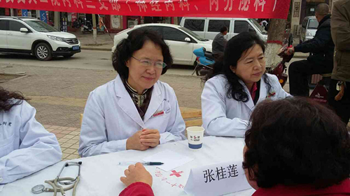 此次活动的义诊队伍由神经内科、内分泌的专家教授、业务骨干等医护人员共15人组成。义诊在早上9点15分开始,义诊内容有:脑血管病专科、头疼、头晕专科、糖尿病专科、甲状腺疾病专科、免费测血压以及其他健康咨询。不少附近城镇的居民闻讯赶来,现场一时热闹非凡。活动过程中,张桂莲教授、徐静教授、展淑琴教授、王俊宏副教授、卜宁副教授等热情为当地群众诊治,悉心解答群众的各种问题及困惑。当地不少群众都感慨地说:“这种在家门口就能看上城里专家的活动就是好啊!”