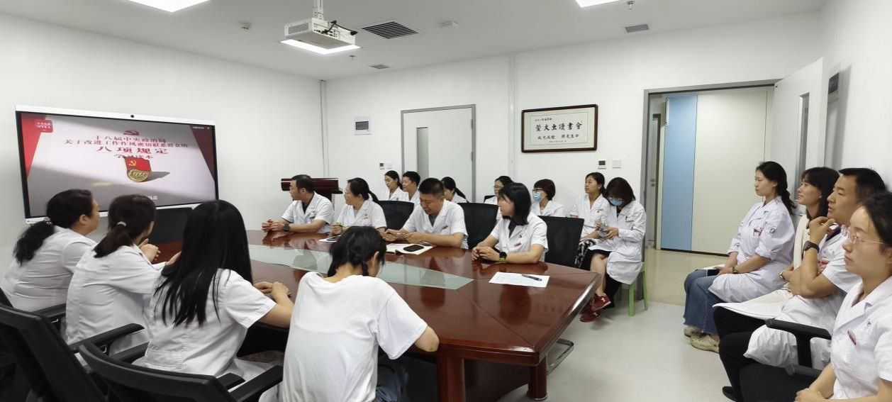 在认真学习完视频内容后,王娜书记向与会党员提出要求,将八项规定的内容与科室工作相结合,全心全意为患者服务。加强工作作风建设,提升患者满意度,党员同志要切实起到先锋模范作用,一切工作以患者为中心,继续强化党建引领学科发展,听党指挥,提升医疗服务质量。