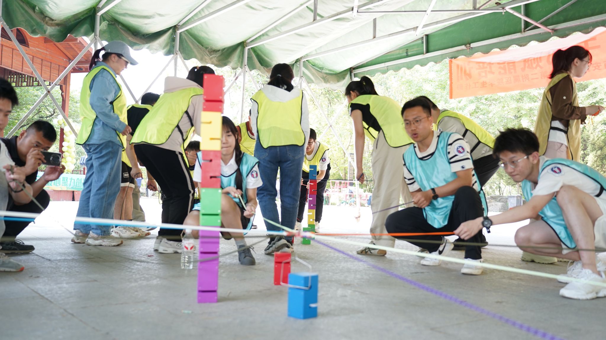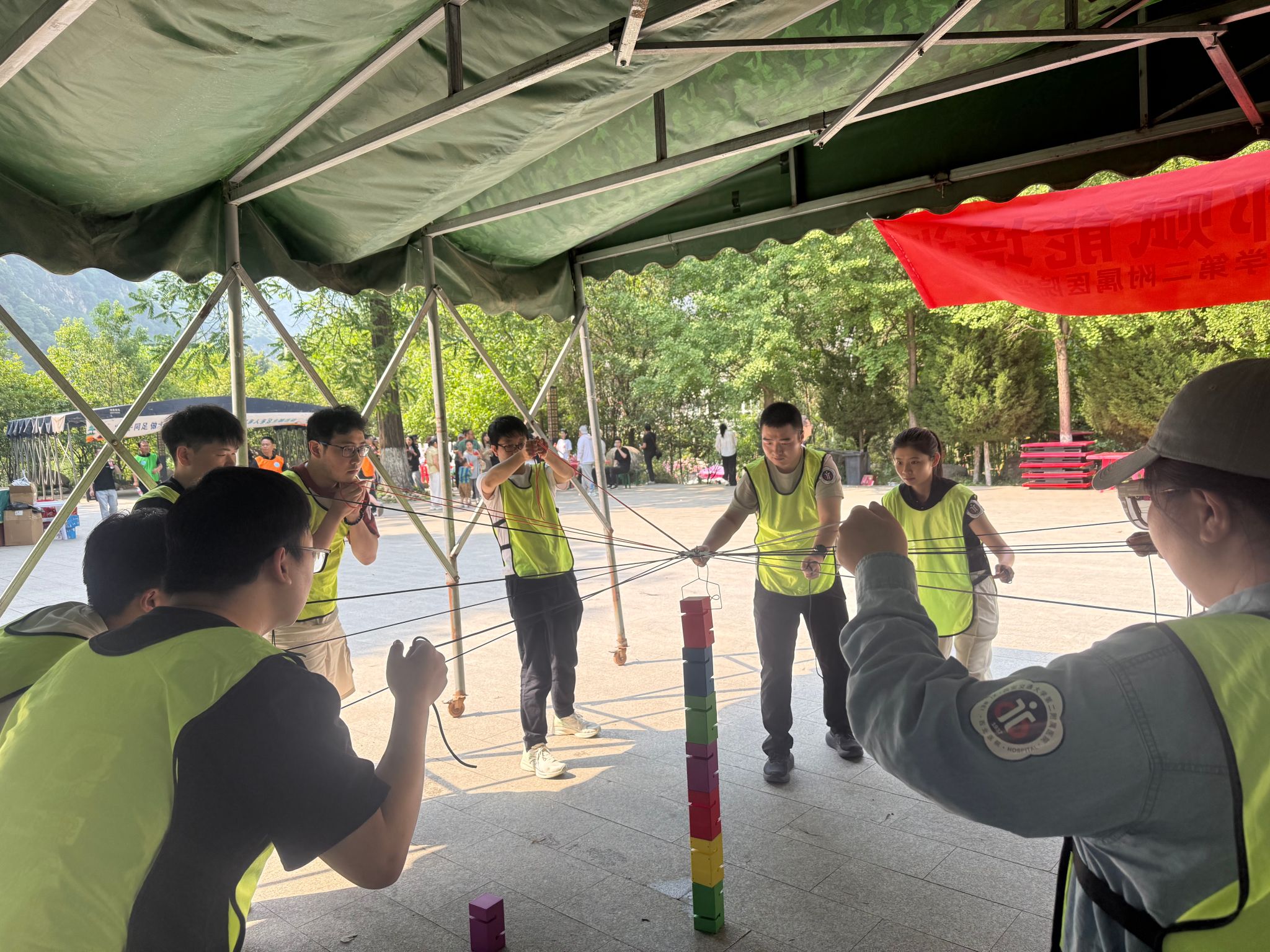 参观结束后,团干部们来到户外拓展训练场地,开展团队拓展活动。本次拓展训练以团队协作为核心,设置了多个富有挑战性的项目,每个环节都需要队员之间密切配合、高效沟通,才能以最快的速度完成任务。大家充分发挥各自的优势,相互鼓励、相互支持,为了团队的荣誉全力以赴。