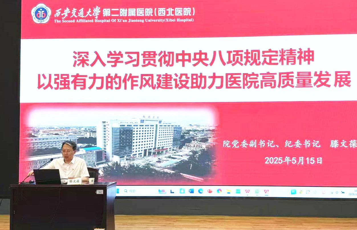 滕文葆副书记聚焦《深入学习贯彻中央八项规定精神,以强有力的作风建设助力医院高质量发展》主题,生动阐述了中央八项规定及其精神的历史沿革、核心要求、如何改变中国、身边鲜活案例以及《纪律处分条例》有关要求等。他结合身边违反中央八项规定精神的实际案例,着眼党性、党风、党纪这一有机整体,为参训学员带来了一堂内容丰富、教训深刻的警示教育党课,教育引导全体学员进一步端正入党动机,提高思想站位,强化政治修养。并鼓励大家要通过持续强党性、树党风、守党纪,争取早日成为一名忠诚干净担当的共产党员。