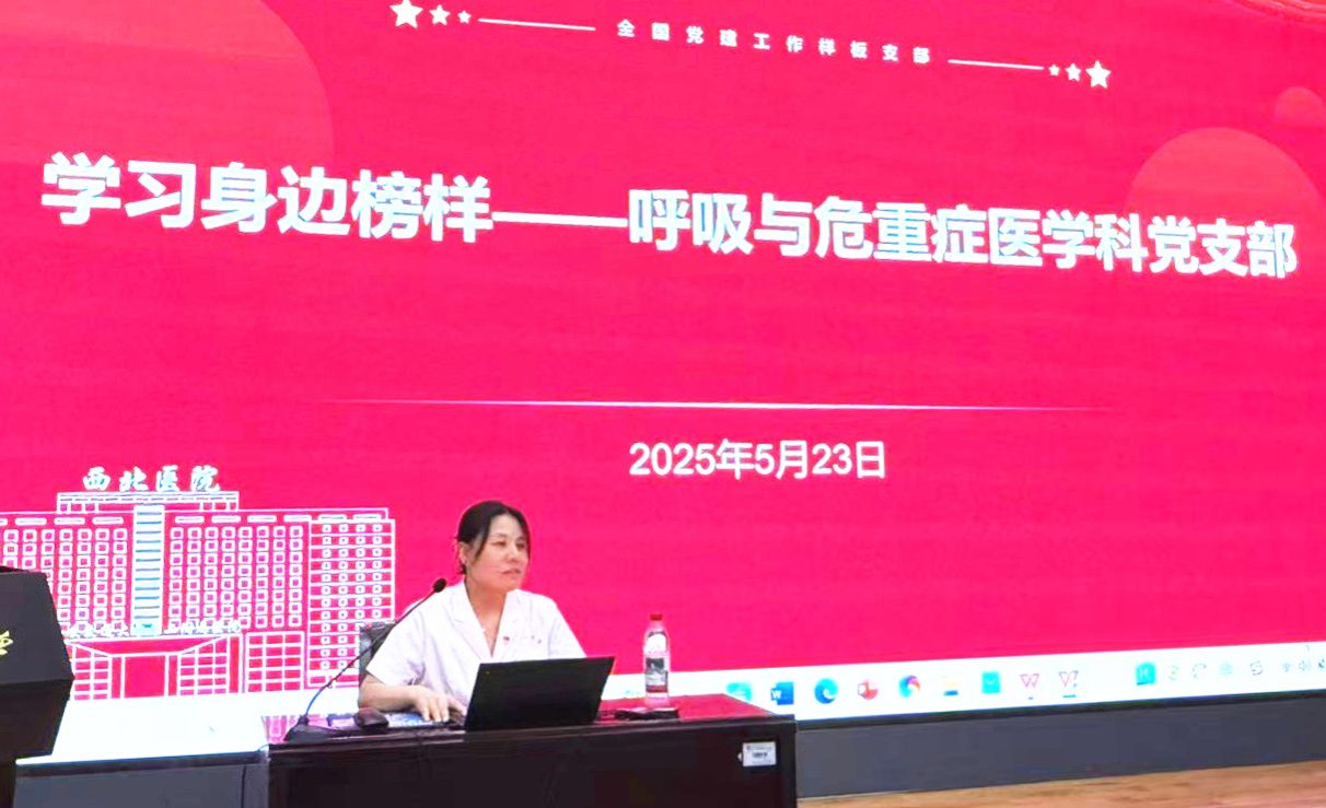 杨侠书记以《学习身边榜样》为切入点,立足呼吸与危重症医学科支部整体建设、党建业务融合、工作举措机制以及取得阶段成效等,分享了党支部如何建设运用“三讲五带”工作机制,团结带领党员群众齐心协力克服困难,全面推进提升学科建设的工作案例。通过讲述身边人、身边事,为学员树立了一个个生动形象的党员先锋模范形象,号召每一位学员要在日常工作中做到优秀、让优秀作风成为日常。