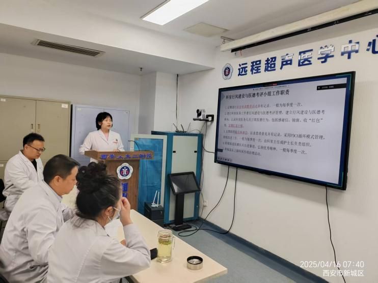 在4月初,党支部集中学习了《十八届中央政治局关于改进工作作风、密切联系群众的八项规定》原文。会上结合医疗行业特点,重点解析了“精简会议活动”“改进调查研究”“厉行勤俭节约”等条款的具体内容及与工作关联性。参会人员围绕“如何将八项规定精神融入日常医疗工作”展开热烈讨论,一致表示要以患者需求为导向,优化服务流程,从思想源头上杜绝形式主义、官僚主义,树立清正廉洁的医疗行业形象。后期,党支部组织全员学习《医疗机构工作人员廉洁从业九项准则》,从合法按劳取酬,到严守诚信,不参与欺诈骗保;从依据规范行医,避免过度诊疗,到恪守保密,不泄露患者隐私等内容,让大家深刻理解每一项规定的内涵与重要性。党支部书记姜珏鼓励大家在提升医疗技术的同时,不断强化行风意识,为患者提供更优质、廉洁的医疗服务。