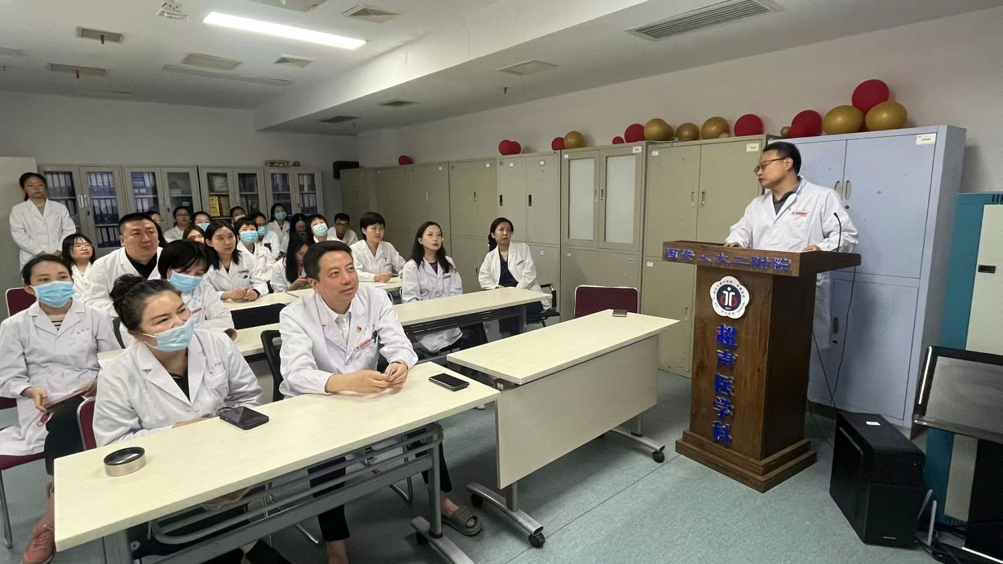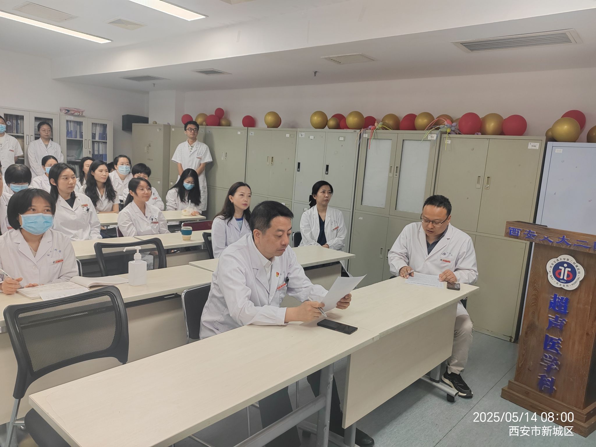 在前期学习的基础上,5 月 28 日,党支部聚焦 “中央八项规定学习教育及党风建设”专题,引导党员深刻认识党的作风建设的长期性、复杂性。会议强调,科室全体人员要将八项规定精神贯穿于医疗服务工作中,重点加强行业作风自查自纠,坚决抵制医疗行业中的“微腐败”、过度检查等不正之风,切实维护患者权益。同时,支部部署建立长效学习机制,将行风建设纳入考核评价体系,推动形成 “学规定、强作风、促发展” 的良好氛围。