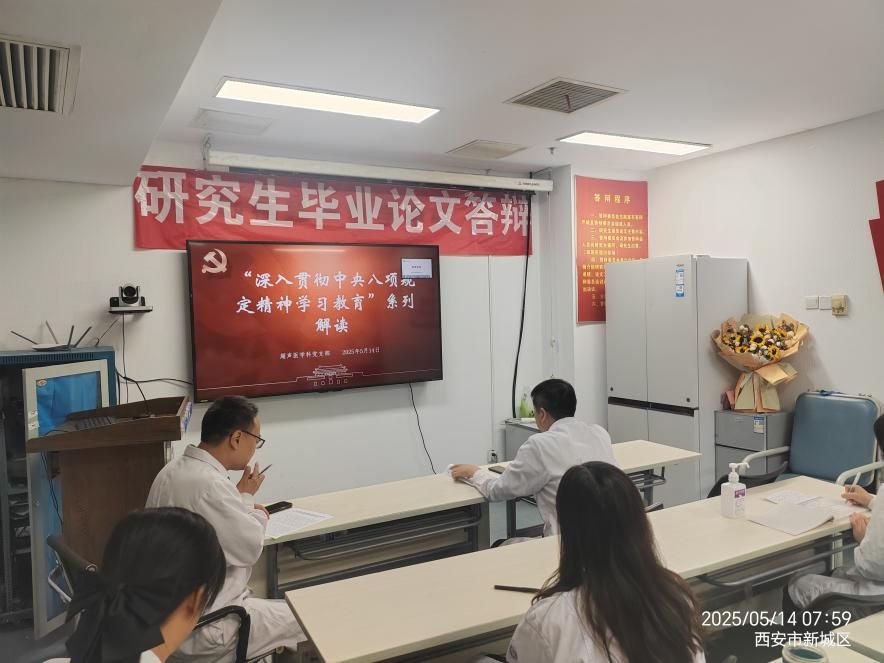 5 月 14 日,支部以 “中央八项规定精神主要体现在哪些方面?” 为主题开展专题学习,系统梳理规定在改进调查研究、精简会议活动、规范文件简报、厉行勤俭节约等方面的具体要求。在交流研讨过程中,党员们紧密联系科室工作,就如何在诊疗服务中更好地践行 “为民服务” 宗旨提出诸多建设性意见。例如,进一步优化超声检查流程、加强与临床科室的沟通协作,确保诊断的准确性和及时性等,切实将学习成果转化为提升服务质量的具体行动。