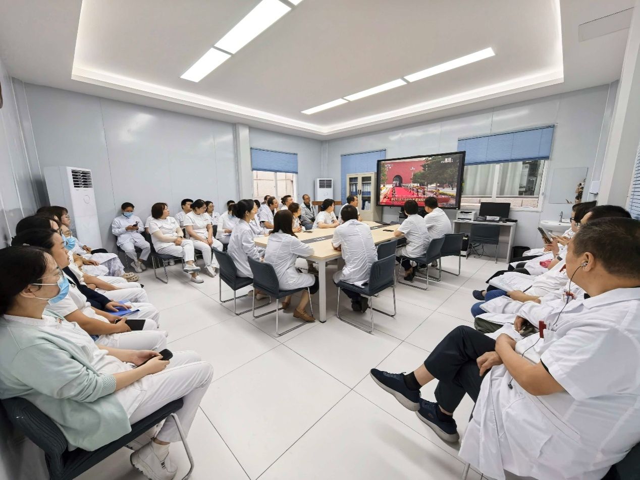 2025年9月3日,是中国人民抗日战争暨世界反法西斯战争胜利80周年。为铭记历史、缅怀先烈、传承伟大抗战精神,肿瘤放疗科组织全体医护人员、技术员,及等待就诊的患者共同观看在北京天安门广场举行的盛大阅兵仪式,让诊疗空间成为传递爱国情怀、凝聚精神力量的特殊“课堂”。