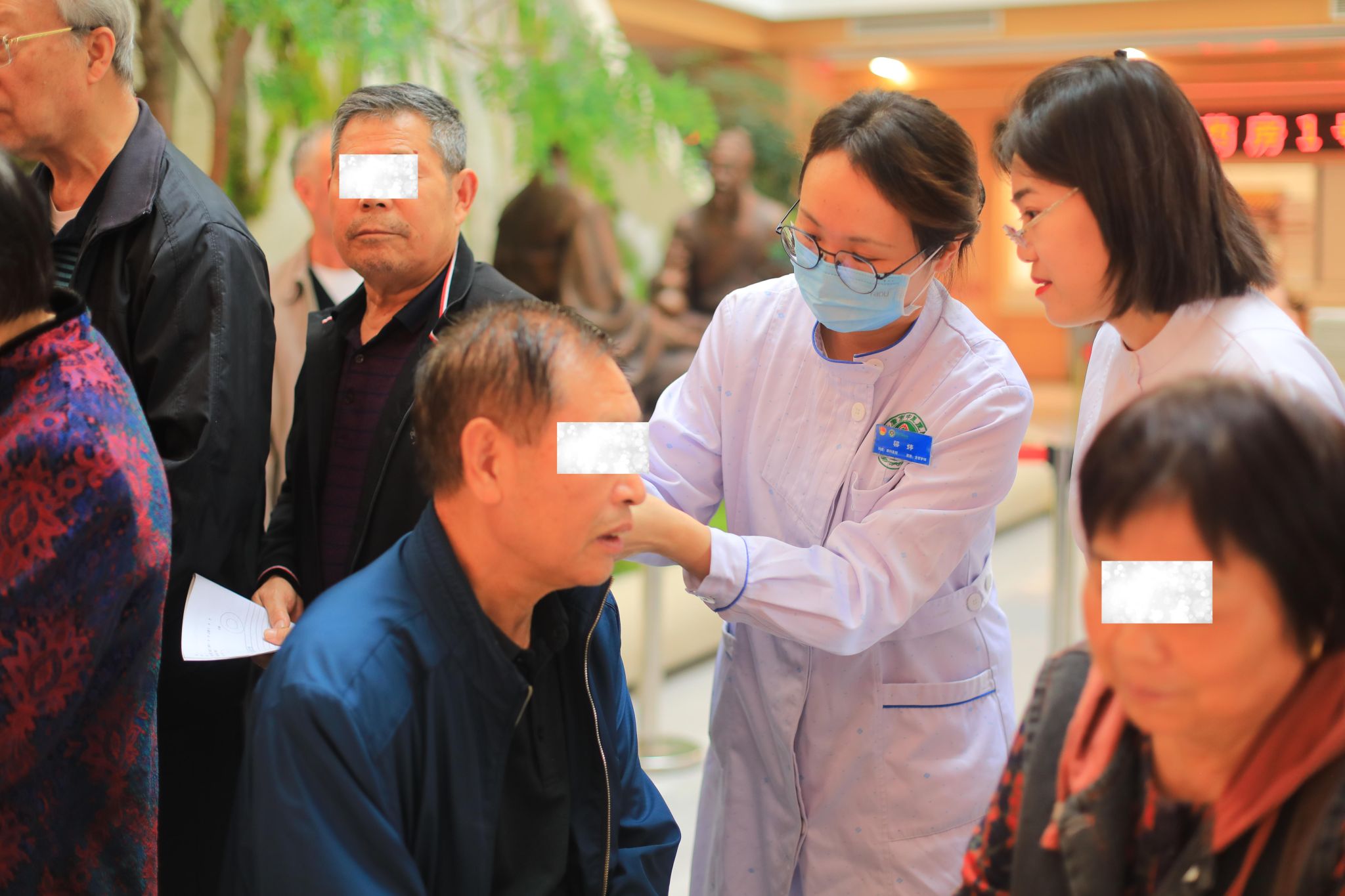 同时,在现场专门开展耳穴压豆等中医适宜技术服务,医师根据患者不同症状,精准选取耳部穴位进行贴压,有效缓解了中老年人群常见的视疲劳、干眼不适等问题。
