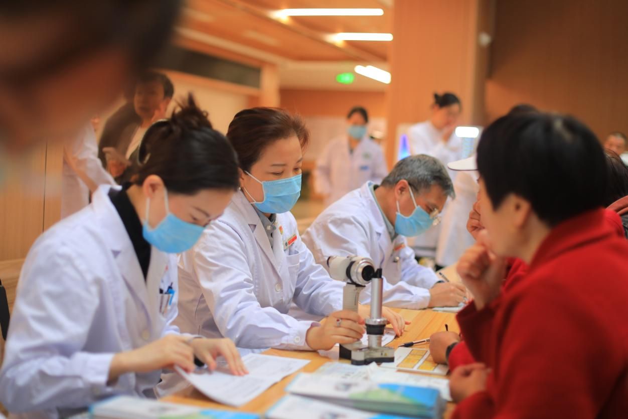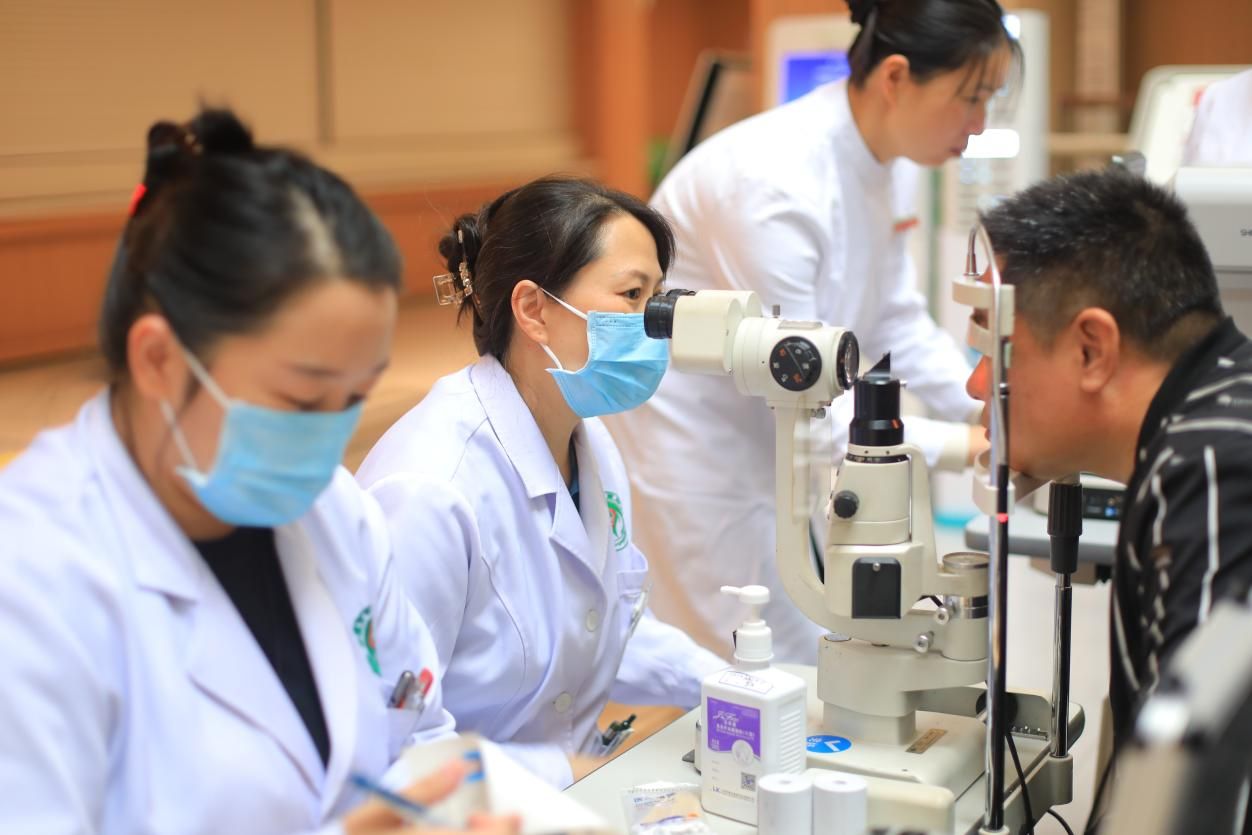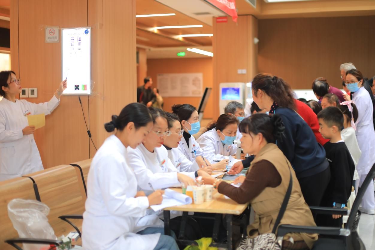义诊现场,眼科党支部王建明教授、范雅稚副教授及支部党员医护们分工协作,有条不紊地为群众开展视力检查、裂隙灯检查、眼压测量、血压、血糖监测等基础诊疗服务,针对白内障、青光眼、干眼症、青少年近视等常见眼病,逐一开具个性化诊疗建议与用药指导。并温馨提醒中老年人群建议每半年做一次眼压和眼底检查,青少年应建立动态视力档案,做到眼病“早预防、早发现、早治疗”。