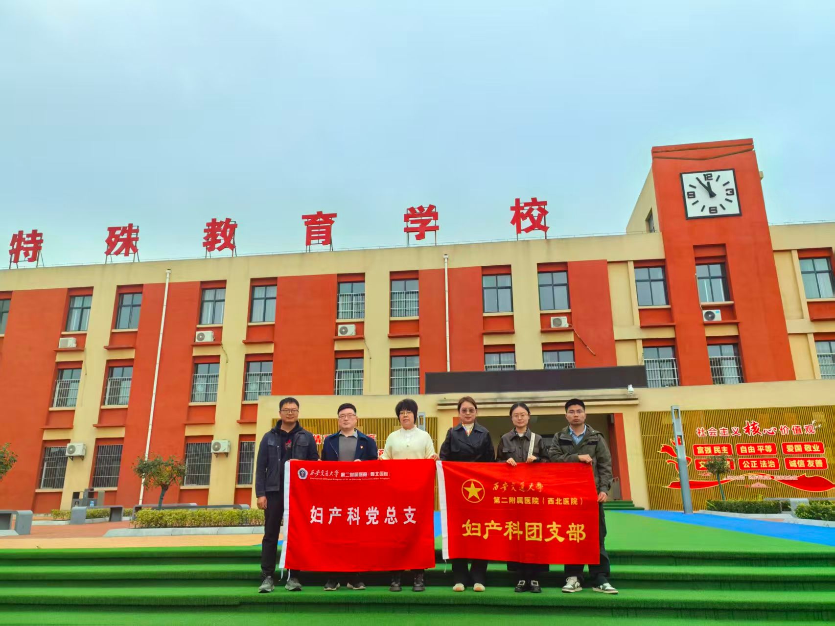 为庆祝西安交通大学第二附属医院建院88周年,深入践行“仁心仁术”的医者初心与社会责任,10月18日,我院妇产科党支部联合团支部组织开展了“情系特教,爱满柿乡”党团共建主题活动。此次活动特别邀请西安交通大学第二附属医院团委委员李孟怡全程参与,并得到富平县白庙镇卫生院党支部的大力支持,医校联动走进富平县特殊教育学校。