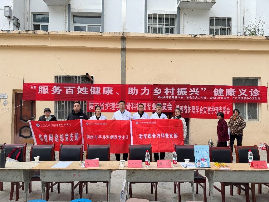 10 月 22 日,骨病与创伤病区、信息网络部、老年综合内科三个党支部共同派出代表,参与由省机关事务服务中心主办的 “服务百姓健康、助力乡村振兴” 健康义诊活动,在宁陕县江口镇高桥村为当地村民送去专业医疗服务与健康关怀。