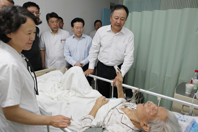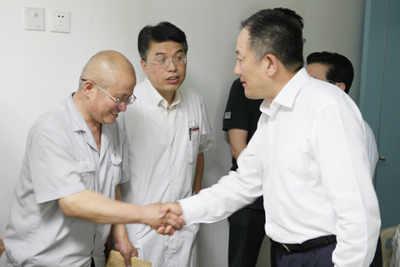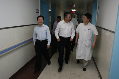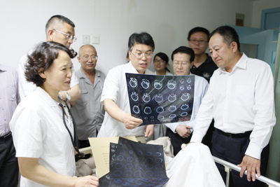 陈强部长一行首先来到我院神经内科看望住院的省基督教两会名誉主席、会长王怀仁,代表省委、省政府对王老和家属表示关心和慰问,祝王老早日康复,并送上慰问金。接着在会议室听取了神经内科副主任张桂莲教授对王老的病情介绍,对我院积极有效、精心周到的治疗和护理表示感谢,高度肯定、强调了王老爱国爱教、依法办教、致力引导广大教徒支持党和政府对宗教工作的领导,以及对陕西省宗教工作和经济社会和谐发展所做出的贡献和发挥的重要影响力,希望我院继续尽心尽力做好后续治疗工作。巩守平副书记代表我院韦俊荣书记和贺西京院长表示一定尽职尽责给予王老专业的治疗和优质的服务。