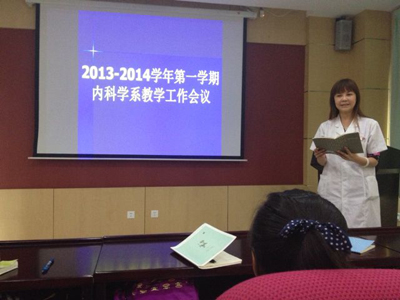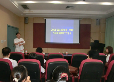 新学期即将开始,我院内科教研室非常重视教学工作,于2013年9月4日下午组织召开了2013-2014学年第一学期内科教学工作会,会议由内科教研室副主任郭晓燕副教授主持,教研室主任董蕾教授、副主任李雅莉教授、内科系各亚专业教学秘书、教研室秘书、教辅人员及各位脱产带教老师等都参加了会议。首先由郭晓燕副主任作了教学工作报告,回顾总结了上一学期教学工作取得的成绩,指出了教学工作中存在的问题及不足,再次重申了教学纪律及要求,并结合当前高等医学教育所面临的形势及我院内科教学特点,明确了本学期教学工作重点及具体计划,提出了新的思路及努力方向。董蕾主任肯定了去年内科教研室的工作成绩,结合自己的教学经验,鼓励各位中青年教师勇于创新、积极探索,使我院内科教研室的工作再上一个新台阶。李雅莉副主任就新学年的教学工作提出了新的设想及要求,鼓励各位带教老师能在日常的教学工作中做出新的创新及成绩。会上脱产教师分别上台谈了自己的感想及目标。大家积极讨论,畅所欲言,献计献策,对新学年的内科教学工作充满了新的希望。