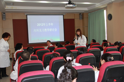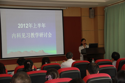 2011-2012第二学期教学已近中期, 4月10日下午,内科学系组织召开了上半年见习教学研讨会,会议由内科教研室郭晓燕副主任主持,董蕾主任、李雅莉副主任,内科学系各亚专业教学主任、教学秘书、往年及现任见习带教老师等20余人参加会议,特别邀请了教务部马肖容主任、徐孝军副主任、常中英老师,院教学督导龚均教授、柏春梅教授前来参加研讨。
